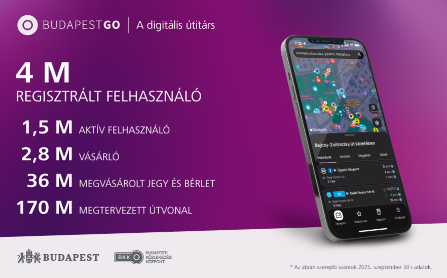 Egy applikáció, amellyel a fővárosban közlekedők egyszerűen és kényelmesen tervezhetik meg az utazásaikat, vásárolhatják meg és érvényesíthetik a jegyüket, bérletüket, valamint követhetik az aktuális forgalmi változásokat. A BudapestGO-t rengetegen használják, sokféle módon, de egy biztosan közös: mindenki célba ér vele. Az applikáció 2025-ben is számos fejlesztéssel gazdagodott: az ügyfelek már több jegyet vagy bérletet is válthatnak egy tranzakció során, sőt már más számára is vásárolhatnak termékeket. Szintén újdonság, hogy új termékként elérhető a kiegészítő repülőtéri vonaljegy a bérlettel rendelkező ügyfelek számára, a diákbérlettel utazók pedig fürdőkedvezményt vehetnek igénybe az applikációban. A vásárlási folyamat biztonságosabbá tételével és az alkalmazás modernebb külső kialakításával is tovább növekedhetett a digitális ügyfélélmény. A közösségi közlekedést használók 96 százaléka hallott már az applikációról, és 10-ből 9 ügyfél elégedett a BudapestGO-val. A havi bérletet vásárlók 45 százaléka már digitális bérlettel utazik, és a vonaljegyek több mint 40 százalékát is az alkalmazásban vásárolják a közösségi közlekedők. Havonta több mint 1 millió jegy- és bérletvásárlás történik az applikáción keresztül A BudapestGO sikerességét mutatja az is, hogy a városi szolgáltatások fejlesztésénél is egyre fontosabb eszközként tekintenek rá a fővárosi döntéshozók, Budapest számos szolgáltatását is támogathatja a jövőben.Célcsoport: