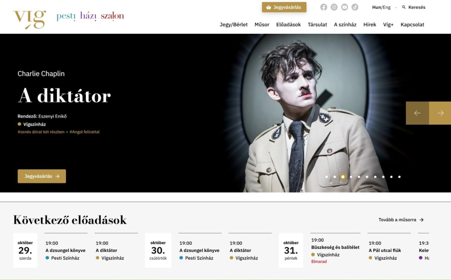 130. jubileumi évadához kapcsolódóan megújította hivatalos weboldalát a Vígszínház. A honlap friss és letisztult vizuális világa igazodik a teátrum karakteréhez, miközben a kortárs webdesign eszköztárát alkalmazza. Reszponzív, minden eszközön gyorsan és könnyen kezelhető felülete korszerű felhasználói élményt kínál: az információk gyorsan elérhetők, a navigáció logikusan követi a nézői igényeket. A Vígszínház páratlan erőforrásokkal bír a kulturális piacon – 130 éves márka, magas színvonalú művészi munka, színészlegendák és tehetséges fiatalok, önálló brandként működő sikerelőadások. A fejlesztés egyik legizgalmasabb újítása, hogy fokozatosan elérhetővé válik a Vígszínház elmúlt 130 évének összes színlapja. Az így létrejövő digitális archívumban bárki számára hozzáférhetővé válik ez a színháztörténeti szempontból is egyedülálló anyag. A színművészek adatlapja is kibővült a korábbi víges szerepekkel, munkákkal, míg az előadások színlapjánál a korábbi szereplők és ikonikus beugrások is elérhetők. Külön aloldalon szerepelnek a társulati díjak, valamint a jegyvásárlással és bérletekkel kapcsolatos gyakori kérdések, így a közönség a praktikus tudnivalókat is egyszerűen elérheti. Az új oldal nemcsak informatív, hanem méltó emléket állít a Vígszínház 130 éves múltjának.Célcsoport: