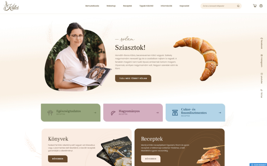 A kalcirecept.hu fejlesztésének marketing célja, hogy a Kálci márka hiteles és inspiráló online központja legyen, ahol a hagyományos és egészségtudatos sütés-főzés találkozik. A weboldal egyszerre ad teret a közösségépítésnek, az edukációnak és az értékesítésnek: a receptek és blogbejegyzések inspirációt nyújtanak, a webshop pedig közvetlen vásárlási lehetőséget kínál. A precizitás, a szakértelem és a tudatosság minden elemben megjelenik – a felhasználóbarát felületen, az átlátható struktúrában és a reszponzív designban. A személyre szabható funkciók (felhasználói fiók, receptmentés, alapanyag-alapú keresés) erősítik a márkához való kötődést és a lojalitást. Marketing szempontból a cél egy olyan egységes gasztronómiai platform megteremtése, amely nemcsak vásárlásra ösztönöz, hanem élményt és bizalmat is nyújt, így hosszú távon növeli a Kálci brand ismertségét és értékét.Célcsoport: