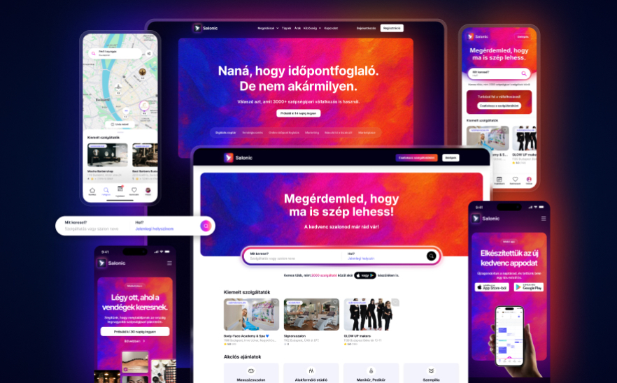 A Salonic új arculata nem pusztán dizájn váltás – egy teljes vizuális nyelv születése. Egy merész, karakteres világ, ahol a technológia és a művészet találkozik. Az új vizuális identitás alapja egy kézzel alkotott, festményszerű háttérvilág: organikus formák, élő színek és kifejező textúrák, amelyek a szépségipar kreativitását és a Salonic innovatív gondolkodását egyesítik. Ez az egyedi, művészeti ihletésű dizájn nyelv egységesen jelenik meg minden felületünkön – a B2C szalonkereső oldaltól a B2B partner felületig, a közösségi kommunikáción át az offline megjelenésekig. A célunk az volt, hogy a hagyományos SaaS-világ rideg funkcionalitása helyett érzelmet, inspirációt és karaktert vigyünk a designba. A Salonic új arculata így nemcsak vizuális megújulás, hanem egy érzés: modern, intuitív és művészileg kifinomult. Egy új vizuális univerzum, ami felismerhető, friss és mer kísérletezni – ahogy mi is.Célcsoport: