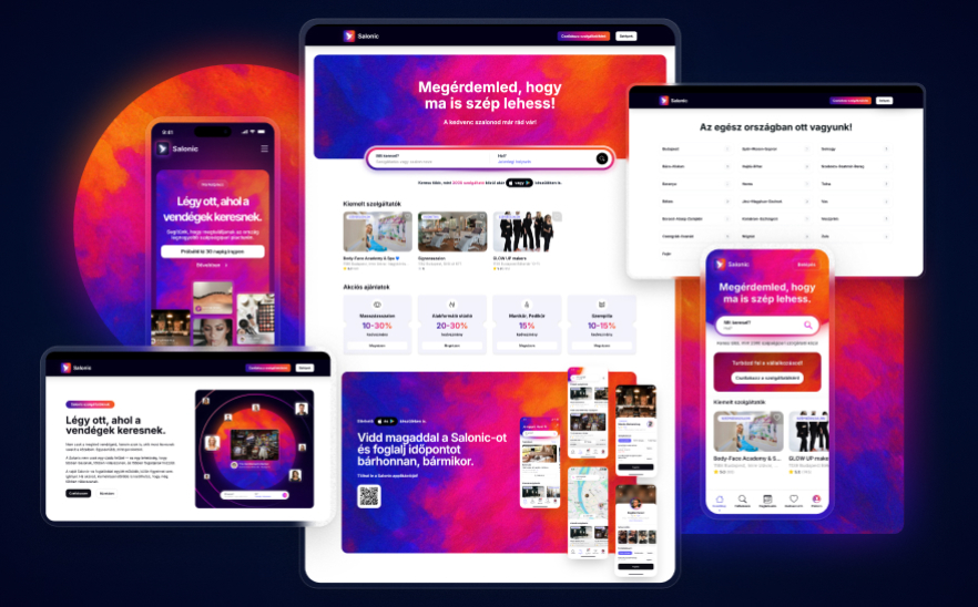 A Salonic.hu nem egyszerűen megújult — teljesen átalakult. Egy korábbi B2B koncepciójú weboldalból Magyarország legnagyobb, országos szalonkereső platformjává vált, ahol a vendégek néhány kattintással foglalhatnak időpontot több ezer szépségipari szakemberhez. A megújulás célja az volt, hogy a korábbi B2B fókuszú weboldalt egy B2C élményplatformmá formáljuk, ahol az esztétika, a sebesség és a funkcionalitás tökéletes egyensúlyban van. Az új Salonic.hu vizuális világa a márka friss arculatára épít — letisztult, merész, inspiráló. Az oldal nem csak informál: vonz, inspirál és egyszerre szolgálja a vendéget és a szakembert. A dizájn mögött komplex technológiai újratervezés áll: teljesen új keresőmotor, szolgáltatás- és városalapú szűrés, AI-alapú ajánlórendszer és intelligens profilpárosítás. Minden funkció célja, hogy a vendég gyorsabban, pontosabban találjon rá a számára ideális szalonra — miközben a szakemberek professzionális, egységes és megbízható módon jelennek meg a platformon. A Salonic.hu így mára nem csupán egy márkaoldal: egy digitális ökoszisztéma központi eleme, ahol a szépségipar jövője már ma megérkezett.Célcsoport: